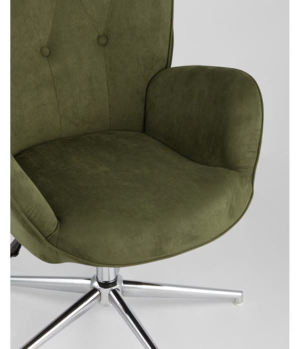 Мягкое сиденье с высокой поддерживающей спинкой анатомической формы подарит комфорт и уют. В качестве обивки используется прочная износостойкая замша с точечным декором. Металлическая ножка регулируется по высоте и обеспечивает хорошую устойчивость. Удобные подлокотники добавят комфорта. Кресло прекрасно смотрится в гостиной или столовой зоне. Высота сиденья регулируется от 45 до 55 см.