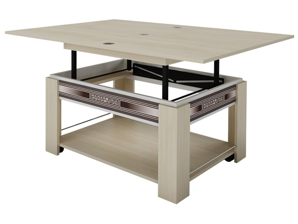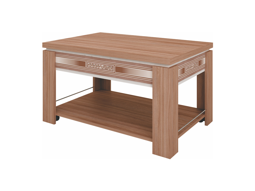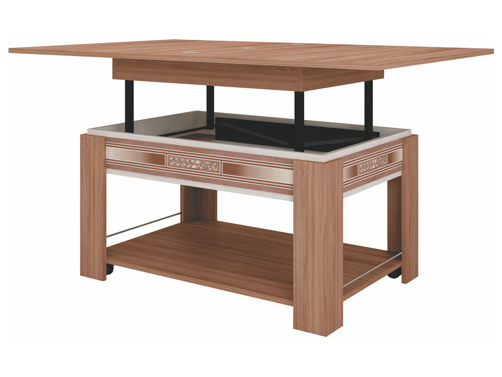 «Агат 24.10» – журнальный стол с механизмом трансформации, позволяющим превращать его в полноценный обеденный. Эффектный рисунок на стекле и контрастные цвета материалов модели, несомненно, украсят любой интерьер.