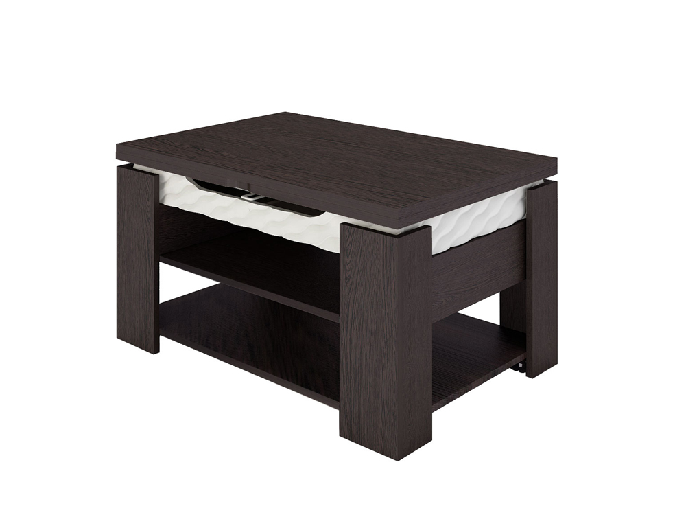 «Агат 27» – это многофункциональная модель, которая сочетает в себе функции журнального и обеденного столов. Cтолешница легко увеличивается вдвое благодаря поворотному механизму.