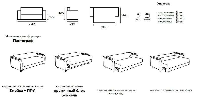 Наполнитель - независимый пружинный блок + ППУ, механизм пантограф.