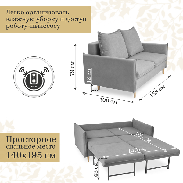Диван Грифон Лайт 1560*940*800 СПМ 1950*1400*430 механизм ЮНИОР