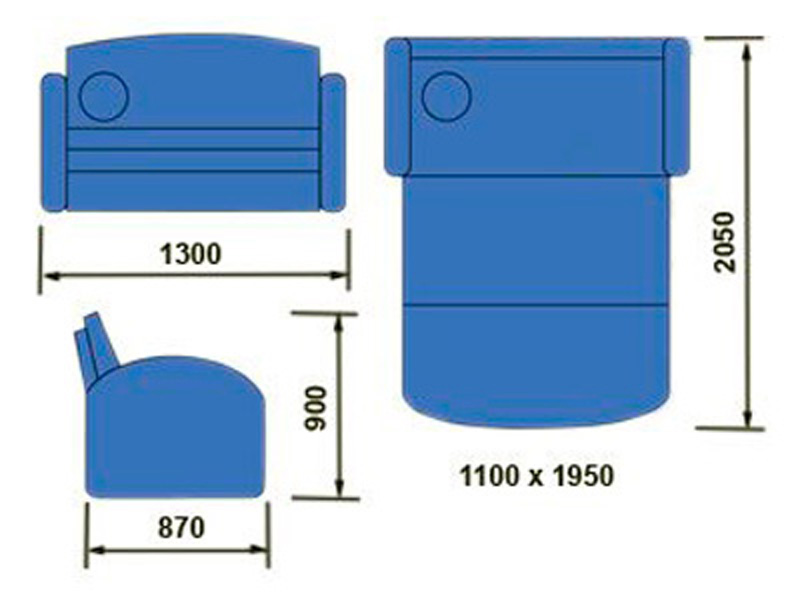 Размеры Н900/1300/900, спальное место: 1100/1950
