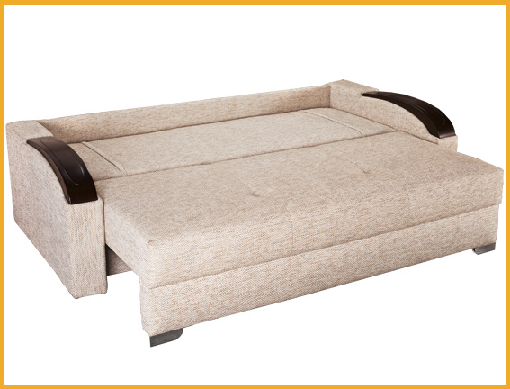 Современный стильный дизайн. Пластиковые дугообразные накладки на подлокотниках. Возможность использования как центральный обьект интерьера. При трансформации требуется расстояние между стеной и диваном. Ровное спальное место. Для удобства присутствует задняя стенка в режиме спального места. Наличие ящика для хранения спальных принадлежностей. В основании спинки и сиденья деревянная рамка, на которую кладется блок независимых пружин с настилом из эластичного пенополиуретана. Диван комплектуется съемными приспинными подушками, наполненными синтепухом. Механизм раскладки-еврокнижка.