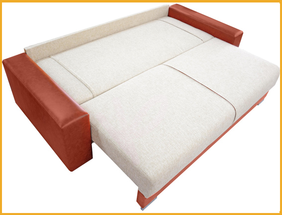 Современный молодежный стиль. Возможность использовать как центральный обьект интерьера. При трансформации требуется расстояние между стеной и диваном. Ровное спальное место. Съемный прямолинейный подлокотник. Для удобства присутствует задняя стенка в режиме спального места. Наличие бельевого ящика. Диван-кровать дополнительно опирается на металлические опоры. В основании спинки и сиденья деревянная рамка, на которую кладется пружинный блок с настилом из термовойлока и эластичного листового пенополиуретана. Съемные чехлы на подушках. Механизм раскладки"еврокнижка".