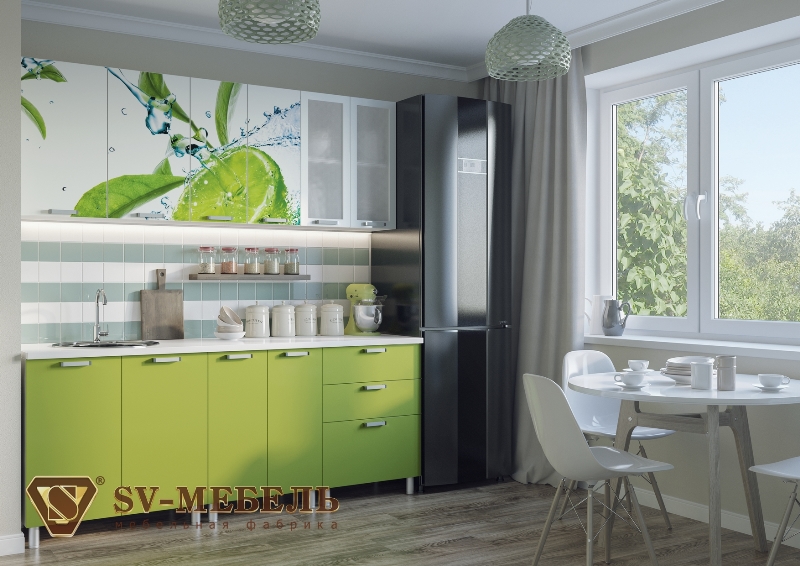 Кухонный гарнитур Лайм глянец с фотопечатью