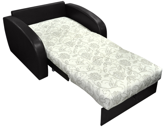 Cтильное кресло- кровать. Ровное спальное место. Возможность использования в качестве центрального объекта интерьера. В основании спального места металлический каркас с поддерживающими деревянными латами и механизмом трансформации «аккордеон». Матрас на эластичном ППУ. Съемный чехол спального места. Спальное место формируется следующим образом: цокольная часть сиденья выдвигается вперед до упора, спинка, состоящая из сложенного листового пенополиуретана, раскладывается. Для трансформирования не требуется расстояние между стеной и диваном. Подлокотникики и спинка съемные.