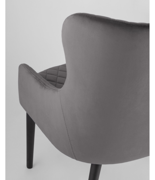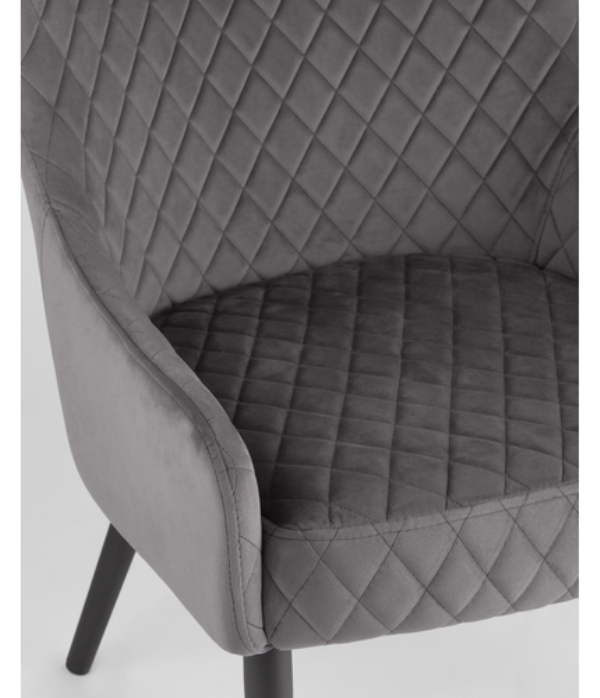Мягкое прямоугольное сиденье,широкая спинка анатомической формы подарит комфорт и уют. В качестве обивки используются прочные износостойкие материалы с декором в виде ромбов. Прямые металлические черные ножки, имеют нестандартную форму в виде перевернутого конуса, поэтому обеспечивают хорошую устойчивость и делают стул оригинальным.