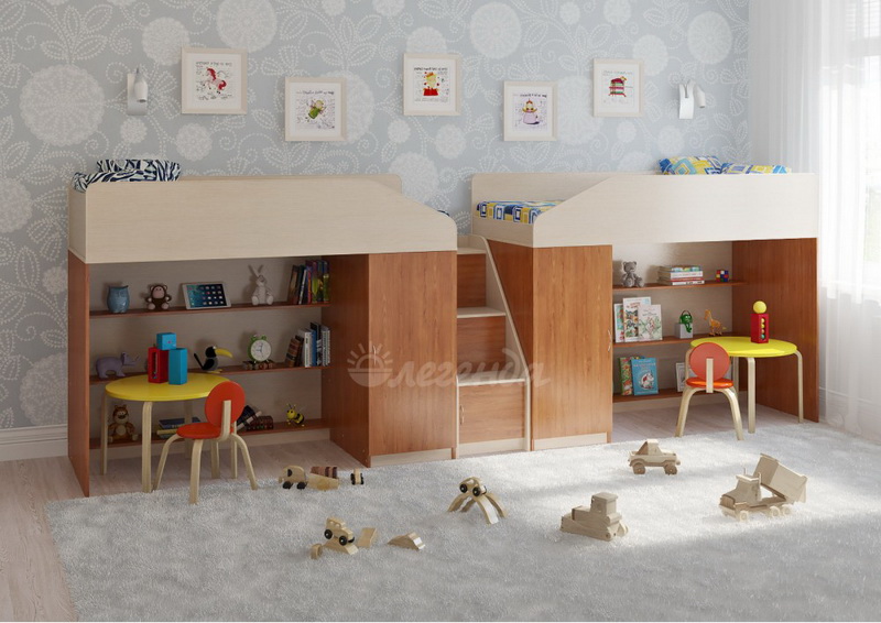Две уютных кровати Легенда 11 с большим спальным местом размером 1800х800. Под спальными местами располагаются игровые зоны – свой уголок,словно домик для каждого ребенка.