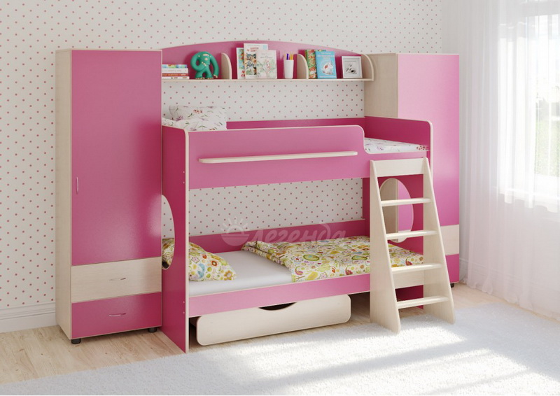 Классическая детская невысокая двухъярусная кровать с двумя параллельными спальными местами размером 1800х80.