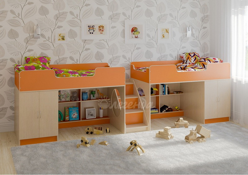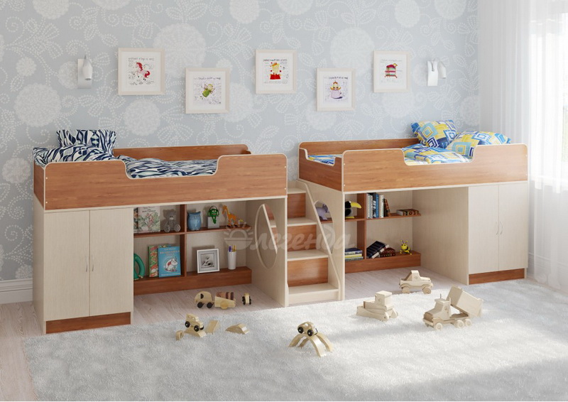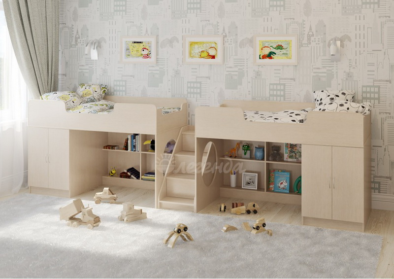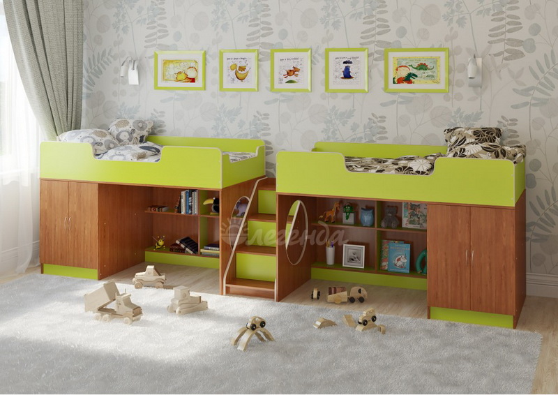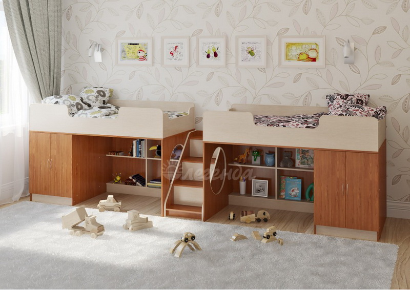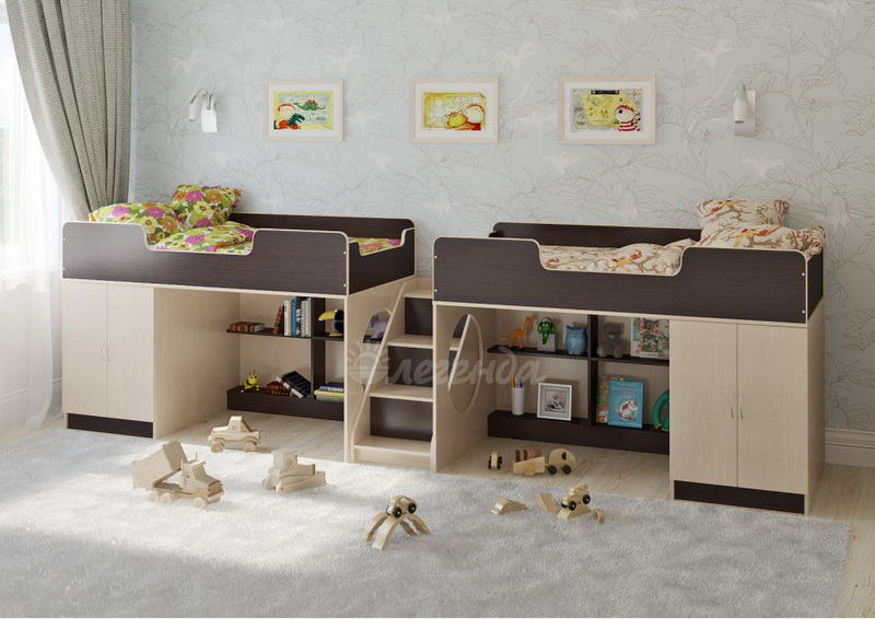 Две кровати Легенда 2.7 - решение для площади малых габаритов,экономия пространства. Под каждым спальным местом располагается игровая зона – свой уголок для ребенка.