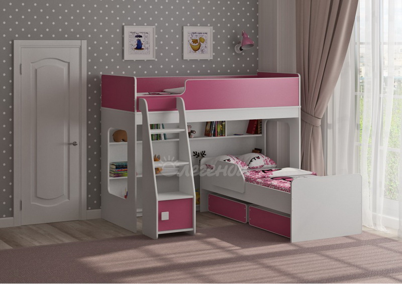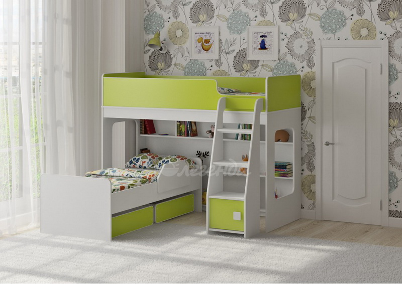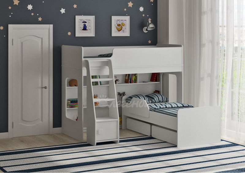 Двухъярусная кровать двумя перпендикулярными спальными местами - 1750х750 и 1600х700.