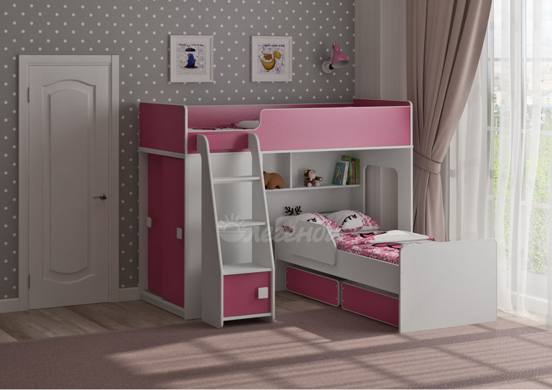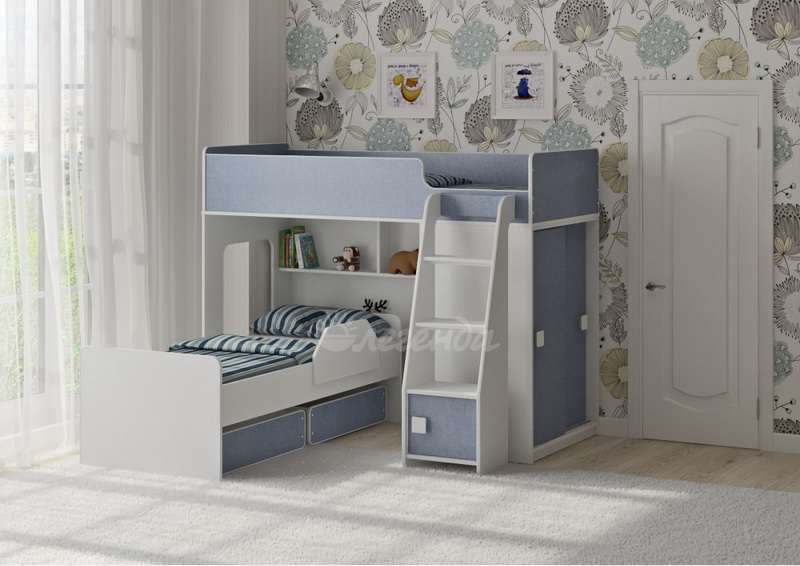 Двухъярусная кровать двумя перпендикулярными спальными местами - 1750х750 и 1600х700 мм.