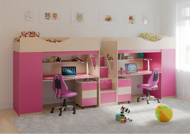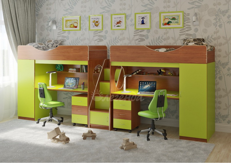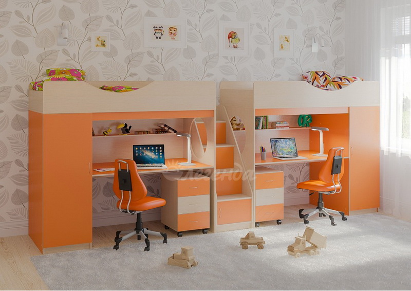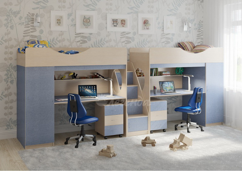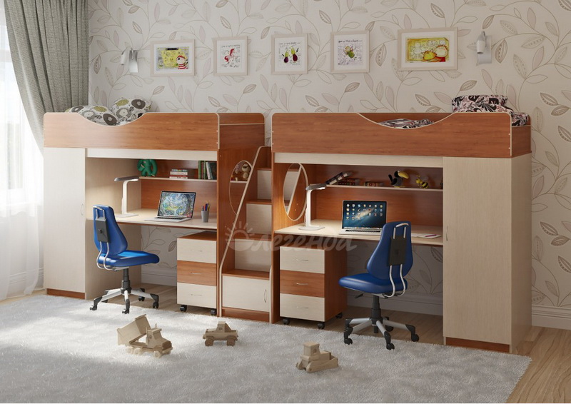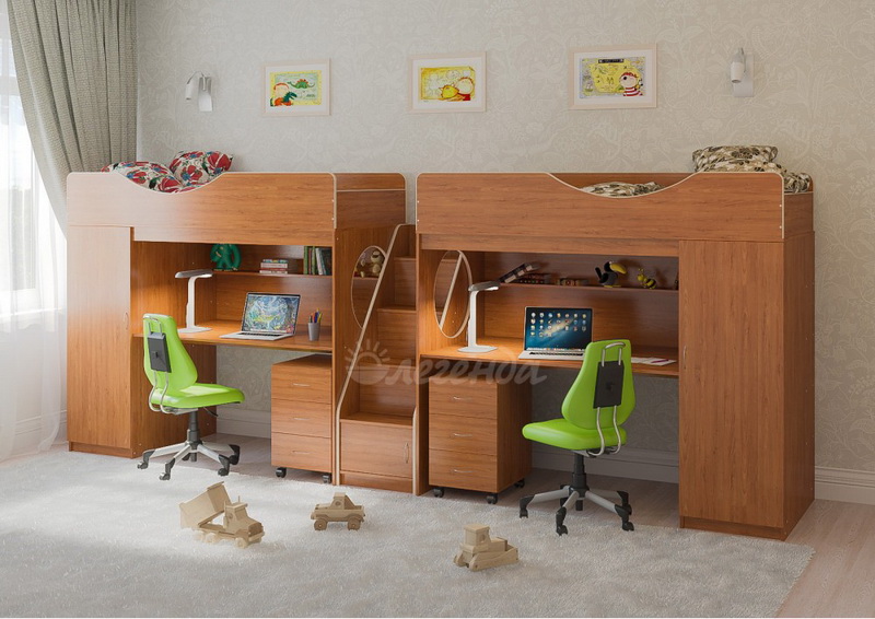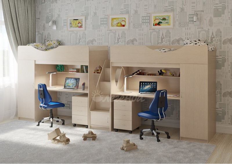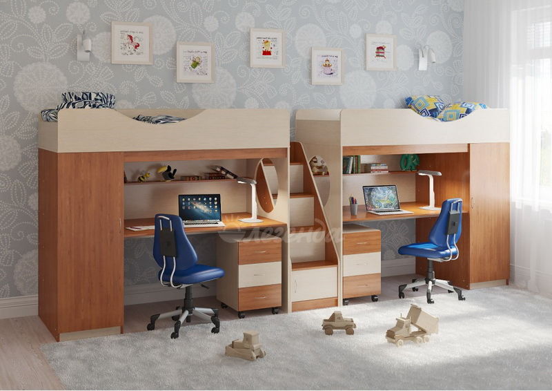 Две кровати Легенда 9 с комфортным спальным местом размером 1800х800У каждого ребенка своя учебная зона со столом под спальным местом - возможности для письменных работ.