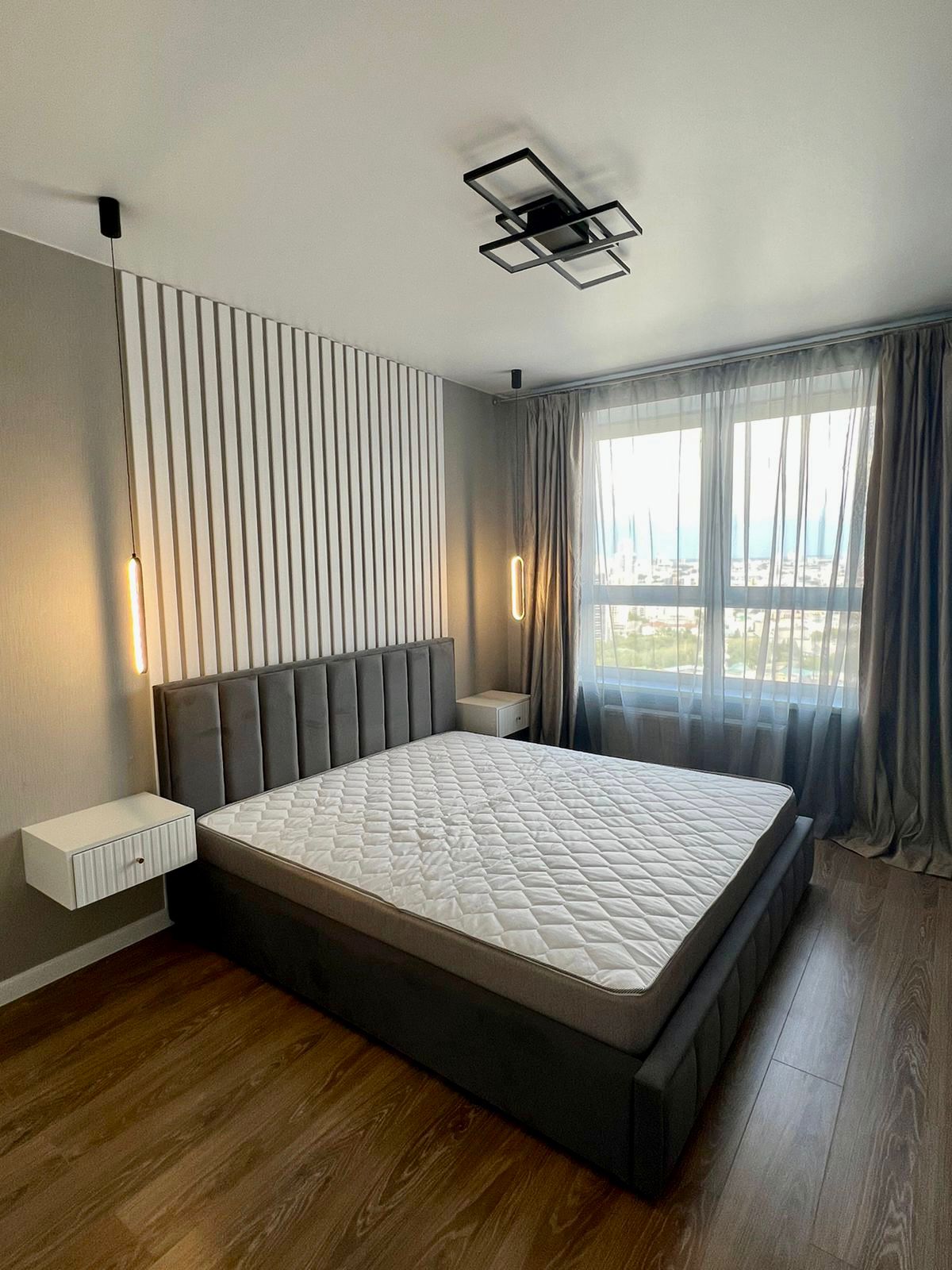 Особенности: Кровать установлена на пластиковые опоры h=25мм. Высота изголовья 1050 мм, изголовье и перядняя царга в виде мягких панелей.