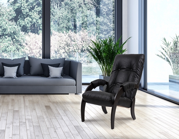 Кресло из экокожии/ткани и дерева впишется в любой интерьер: современный или классический.