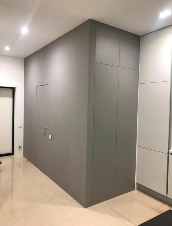 Кухня для одного человека, поэтому шкафы использованы по минимуму.