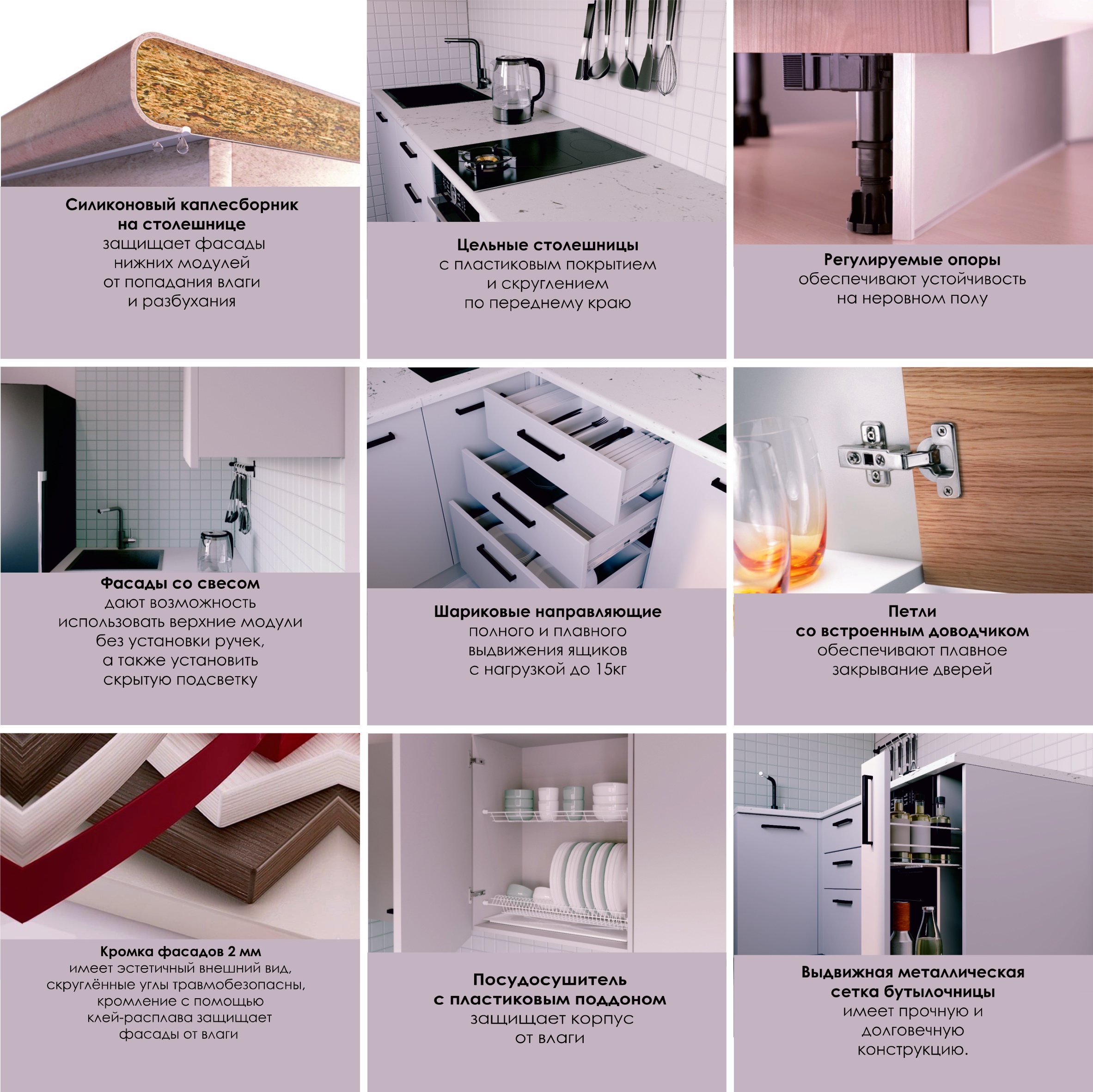 - Силиконовый каплесборник на столешнице - защищает фасады нижних модулей от попадания влаги и разбухания