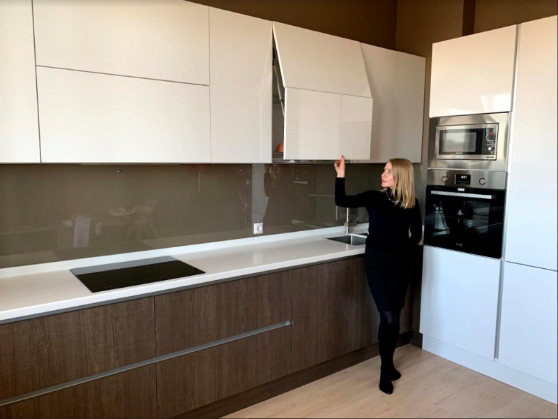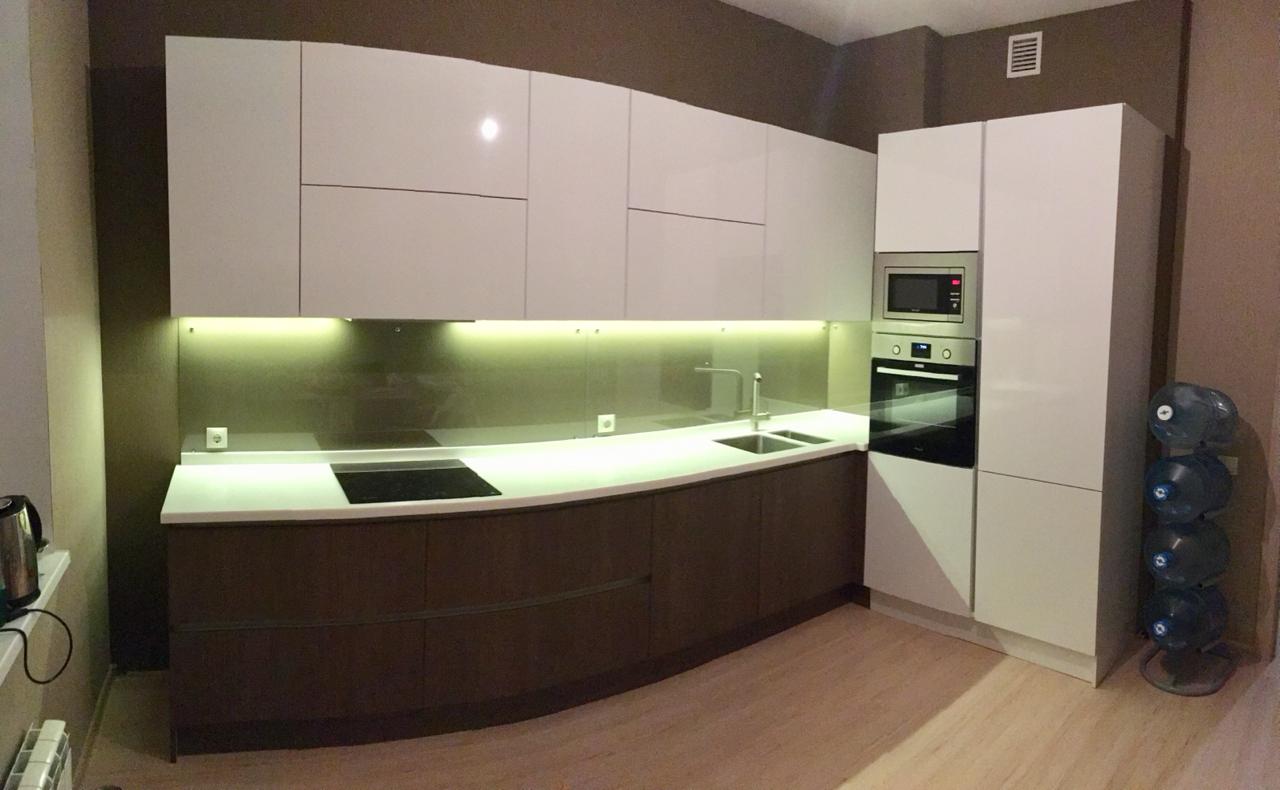 Цвет корпуса, фасада, столешницы, стекла, ручки могут быть практически любыми, цена при этом не поменяется. Кухня может быть оснащена доводчиками (Blum, Boyard).