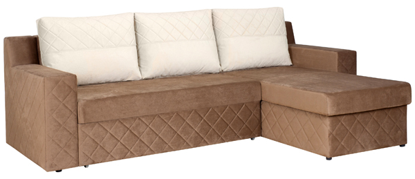 Современный стильный диван. Возможно использовать как центральный объект интерьера. Для трансформации не требуется расстояние между стеной и диваном. В основании короба оттоманки имеется емкость для постельных принадлежностей. Спальное место на основе пружины- змейки, термовойлока и высокоэластичного ППУ. Выкатная часть изготавливается в основной ткани. Декоративная отстрочка на приспинных подушках и элементах дивана. Механизм раскладки «Дельфин»