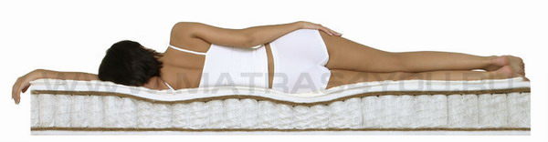 Матрас средней жесткости на основе блока независимых пружин EVS 500, который равномерно распределяет нагрузку по всей горизонтальной поверхности матраса и обеспечивает направленную поддержку позвоночника. Сочетание холлкона и латексированной кокосовой койры обеспечивает комфортную среднюю жесткость и физиологически правильное положение позвоночника во время сна.