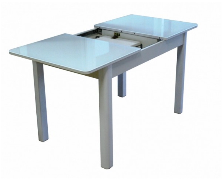 Стеклянный раскладной стол 70х110(+40) см. Прямоугольная столешница с закаленным стеклом с безопасной шлифованной евро-фаской. ЛДСП толщиной 18 мм, обрамлена ПВХ кромкой толщиной 2,0 мм. Стол раскладывается при помощи центральной вставки "бабочка". Ноги в цвет подстолья или хром.