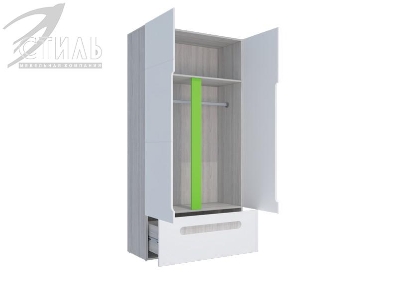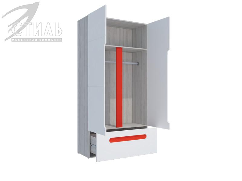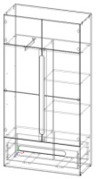 - Шкаф оснащен секцией с выдвижной штангой, секцией с полками и выдвижным ящиком на шариковых направляющих длиной 400 мм