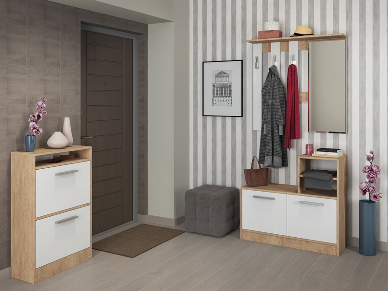 Прихожая (вешалка+комод+обувница) Энтер Белый/Дуб Сонома