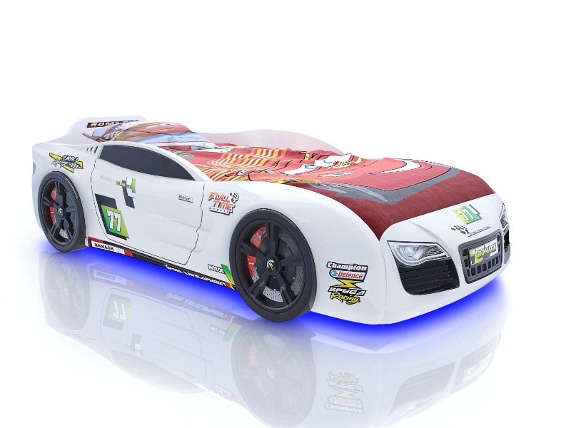 Вы только посмотрите на изгибы бампера, мощные колеса, стильный дизайн – ну какой мальчик устоит перед таким подарком? Все элементы уникальной кровати-авто полностью обтекаемы, они выполнены в технике 3д и повторяют форму настоящей спортивной машины. Подарите радость своему сыну, внесите новизну и краски в его детскую, а он отблагодарит вас любовью и заботой. Замените обычную унылую кровать на современную, стильную и оригинальную спортивную машину, которая будет радовать ребенка на протяжении нескольких лет.