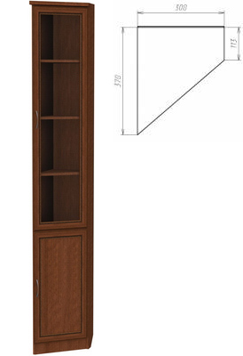 Вашему вниманию предоставляется узкий и высокий угловой шкаф для книг. Его размещение будет очень удобным в небольших по площади жилых комнатах или офисах, поскольку, не занимая много места шкаф, способен хранить внутри себя большое количество книг. Но, при выборе шкафа, стоит уделить большое внимание тому, где именно он будет расположен, поскольку это левосторонний шкаф. Если же вам не подойдет левосторонняя модель, то на нашем сайте вы можете найти аналогичный правосторонний вариант.