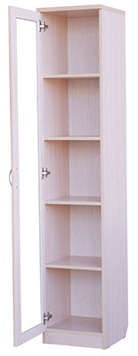 Имея пять вместительных полок, закрытых стеклом, и вариативную цветовую гамму – можно выбрать оттенки благородных древесных пород - данный шкаф может прекрасно вписаться в домашнюю обстановку, придать ей уют и в то же время респектабельность. Ведь подобрав удачный цвет, можно дополнительно подчеркнуть неповторимый стиль и характер вашей комнаты или помещения. Например, с помощью одного из оттенков может создаться впечатление старой, добротной, солидной классики. А при выполнении в другом выигрышном для вашего интерьера цвете шкаф подчеркнет его современность – благодаря универсальному, простому и элегантному дизайну, а также удачному тону подержится необходимое настроение.
