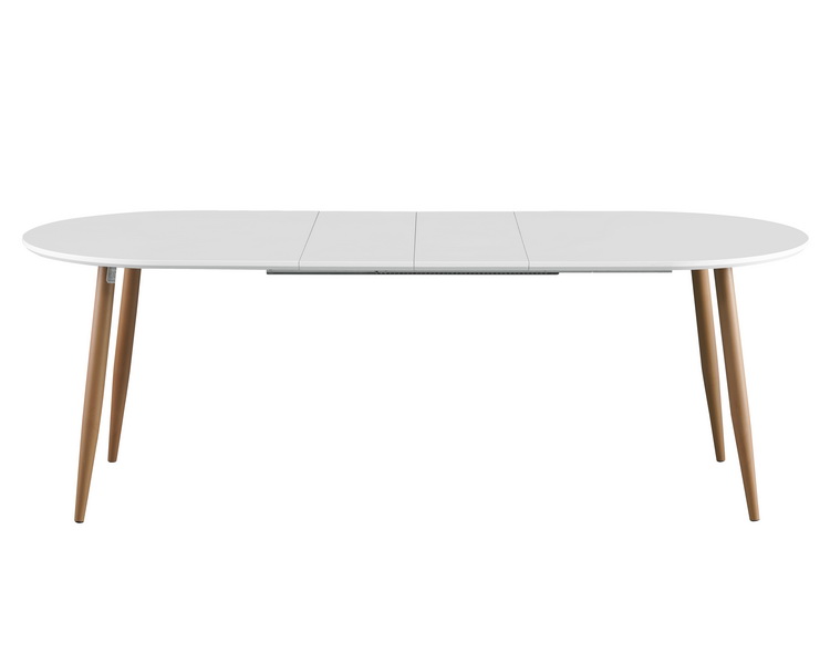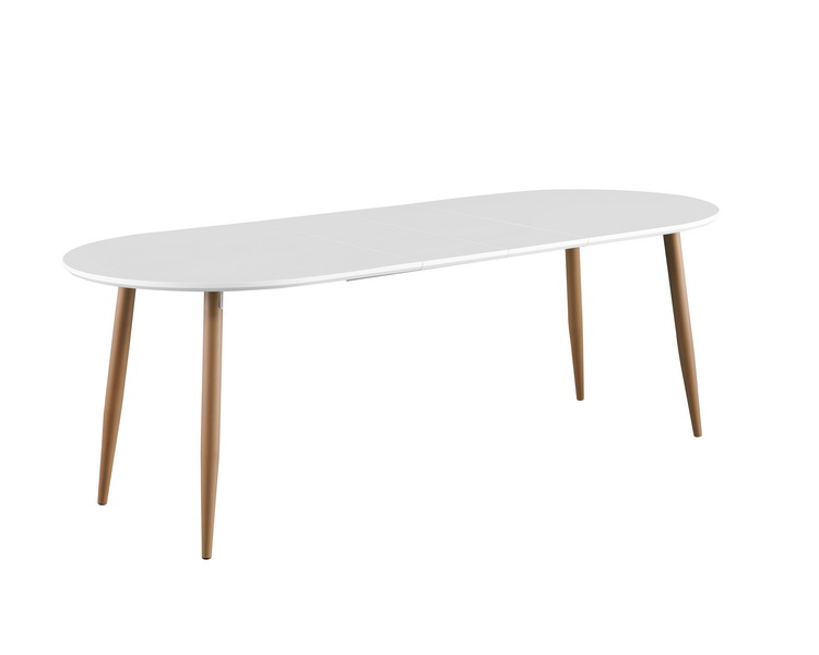 Цвет столешницы - белый, ножки металлические, покрашены в цвет светлого дерева.