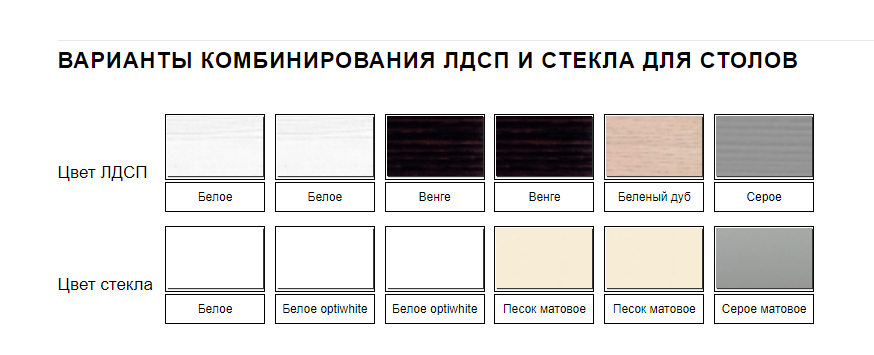 На столах со стеклом допустим незначительный разнотон (разный оттенок) между вставкой (вставками) и половинками столешниц (столешницей).