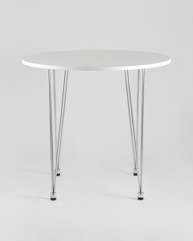 Стильный круглый стол с хромированнымие ножками оригинальной формы