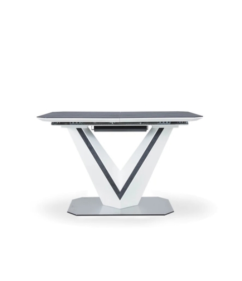 Раскладной обеденный стол с керамической столешницей красивого серого оттенка.