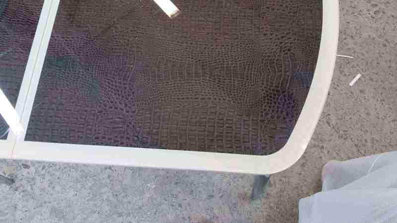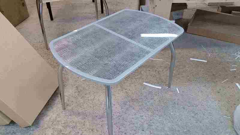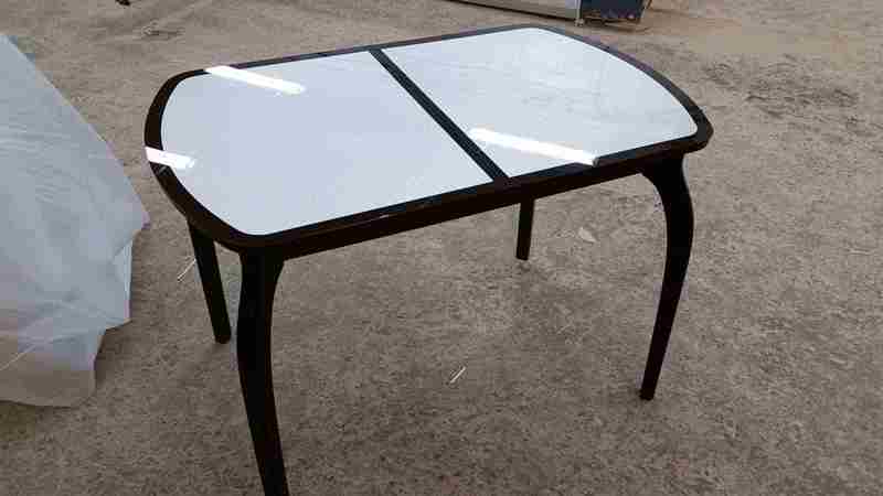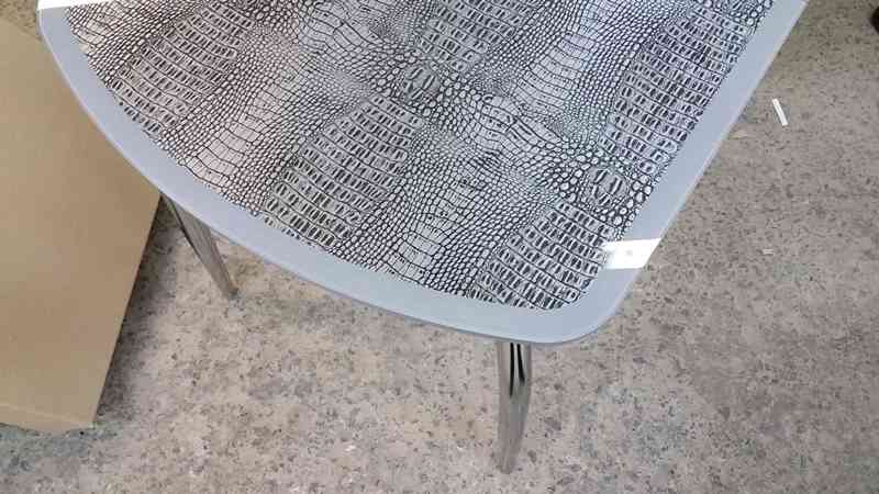 Раскладной стол с закаленным стеклом. Под закаленным стеклом расположена эко-кожа с имитацией кожи крокодила и 4 новые текстурные расцветки "Капитон".