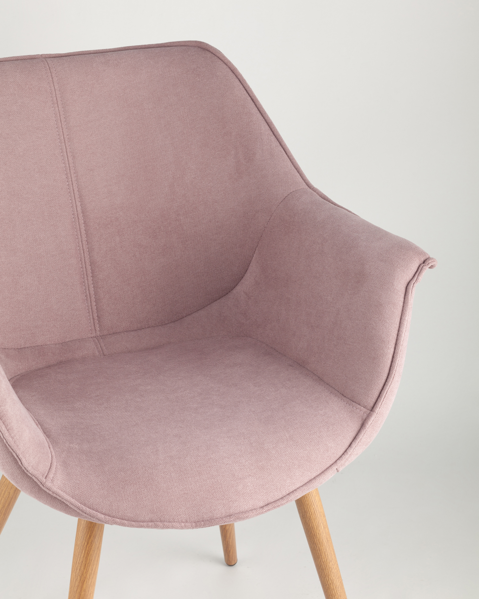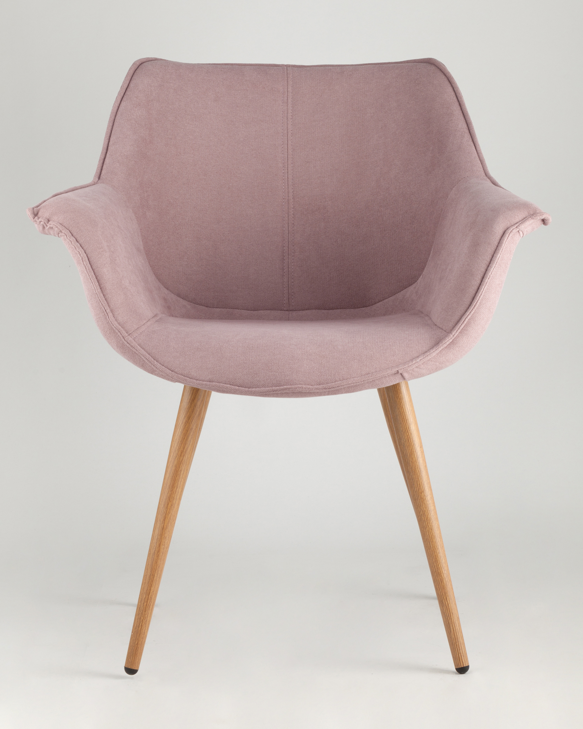 Стильный и мягкий стул имеет широкую эргономичную спинку и удобные подлокотники. Обивкой послужила высококачественная плотная ткань. Ножки стальные с принтом под дерево.