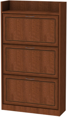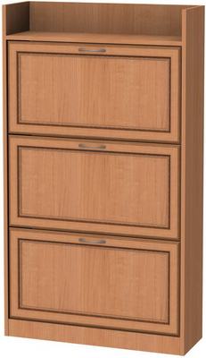 Самым важным качеством, по нашему мнению, выступает ее вместительность и при этом - замечательная компактность. Даже самая скромная по размерам прихожая может быть оборудована этой тумбой. Ведь ее ширина – всего 750 мм, и глубина – 250. Зато высота (1320мм) позволяет вмещать до шестнадцати пар обуви одновременно! Это большая часть обуви большой семьи! Все комплекты размещаются на удобных раскладных полках, их три штуки. Каждая полка разделена на две секции. Таким образом полезная площадь используется по максимуму.