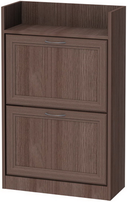 Посмотрите на модель в открытом виде: два вместительных отделения дополнительно разделены перегородками еще на две секции, в верхнюю можно поместить туфли на каблуке или обувь большого размера, в нижнюю – всю прочую. Вы можете поставить эту тумбу не только в прихожей, но в узком коридоре, и она не будет мешать проходу. Ее ширина – всего 590 мм. Если возникнет необходимость переставить тумбу, сделать это очень просто: модель весит всего 20 килограммов.