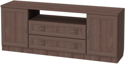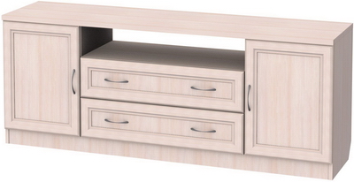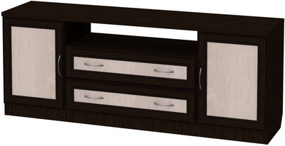 Представляем вашему вниманию еще один недорогой вариант тумбы для гостиной или спальни. Данная модель предназначена для установки ТВ и проигрывателя дисков. Помимо этого тумба также позволяет хранить в своих ящиках книги, диски, различные мелочи.