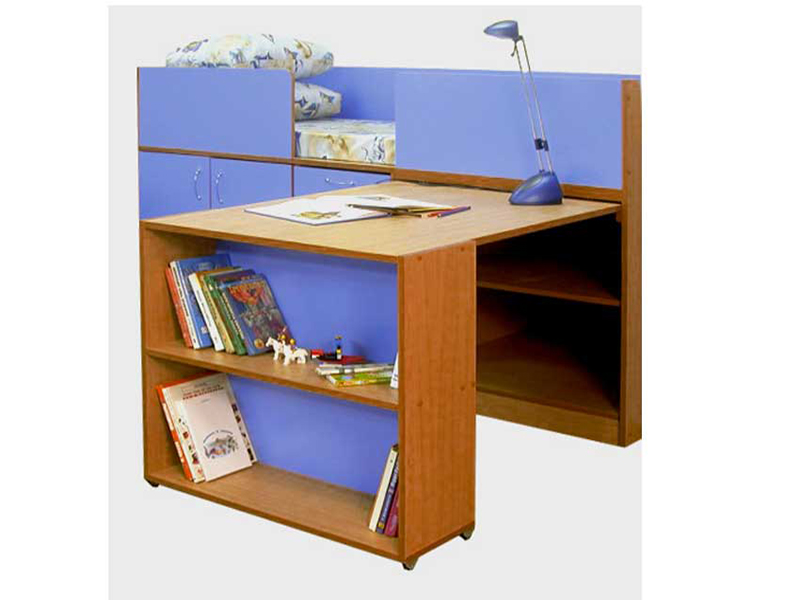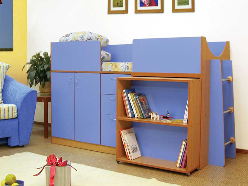 У вашего ребёнка появится дополнительное место для игр, чтения, выполнения домашних заданий. В шкафу расположены две полки для одежды и белья, за выкатным столом находится одна полка.