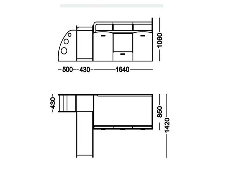Каркас кровати с двумя шкафчиками, выкатной тумбой и нишей для книг