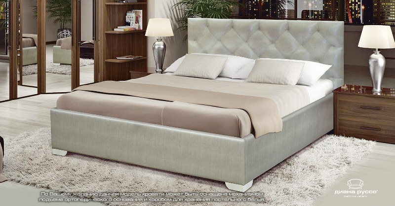 Кровать изготавливается как в эластичной экокоже, так и существует возможность изготовления в мягких и эластичных тканях. По вашему желанию кровать можно оснастить двумя газовыми амортизаторами для подъема ортопедического основания. Кровать с подъемным механизмом позволяет размещать определенное количество вещей и тем самым значительно облегчает проблему, связанную с хранением белья и экономией площади вашей спальни. Дополнительно к кровати можно приобрести на выбор светодиодную подсветку (эко - синяя или меняющаяся регулируемая с пульта управления).