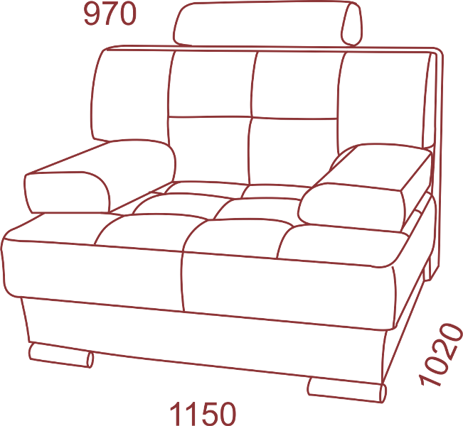 Габаритные размеры дивана: 2100*1000*980 мм.